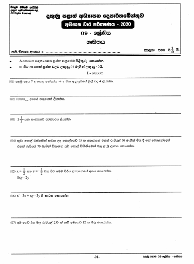 2019 Grade 06 Mathematics Third Term Test Paper with Answers | Southern